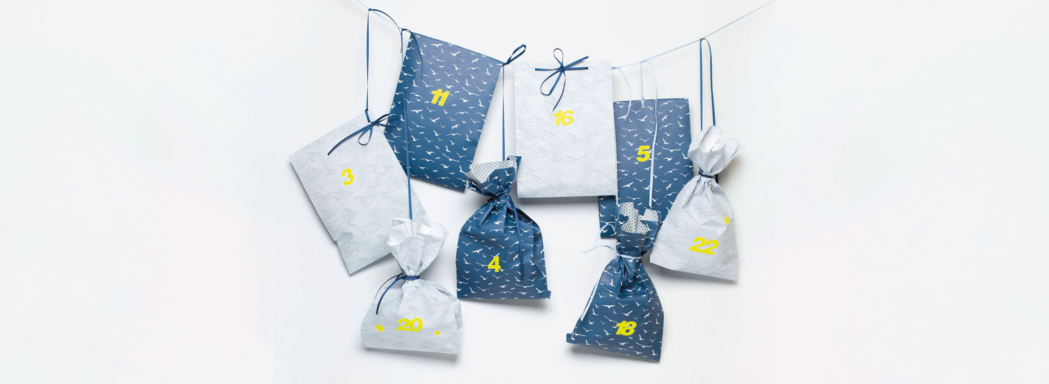 Adventskalender Set "Möwen & Wellen" - 24 Tüten mit Zahlenaufklebern und Band